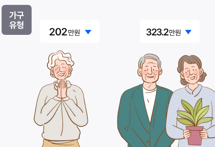 따라서 단독 가구는 월 소득이 202만원 이하, 부부 가구는 월 소득이 323만원 이하이어야 기초연금을 받을 수 있습니다.