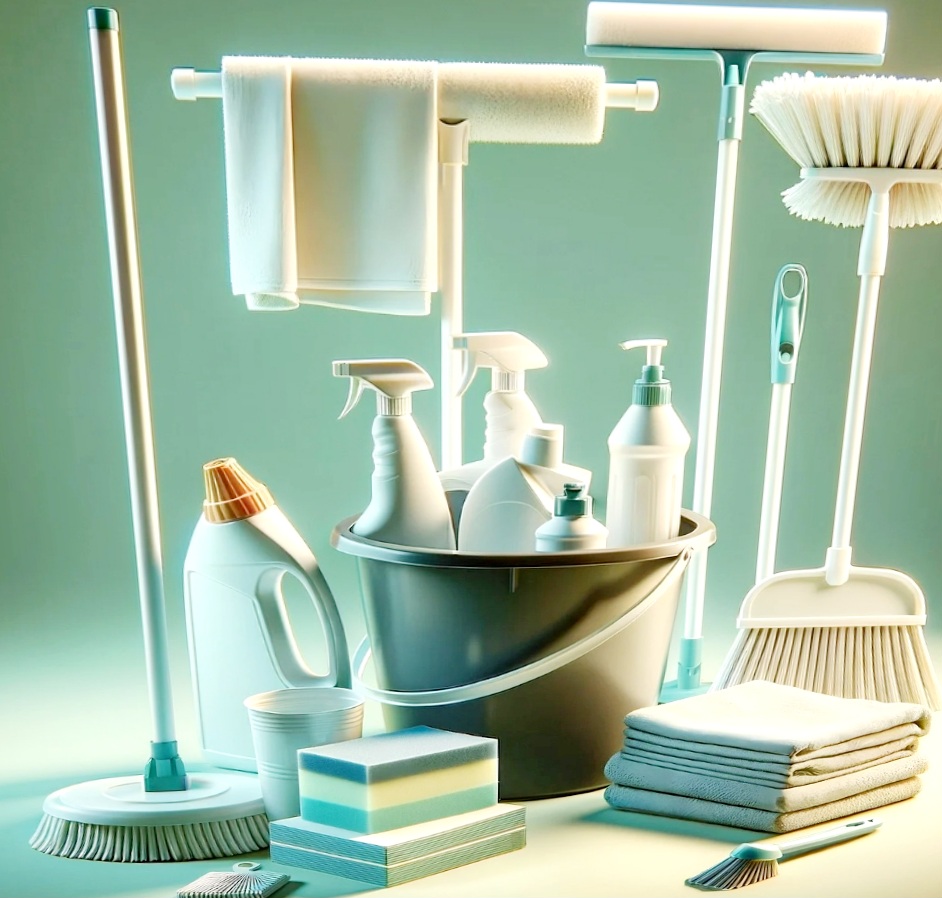 - 청소 도구: 바닥걸레, 밀대, 브러시, 스펀지, 스프레이통, 청소기 등